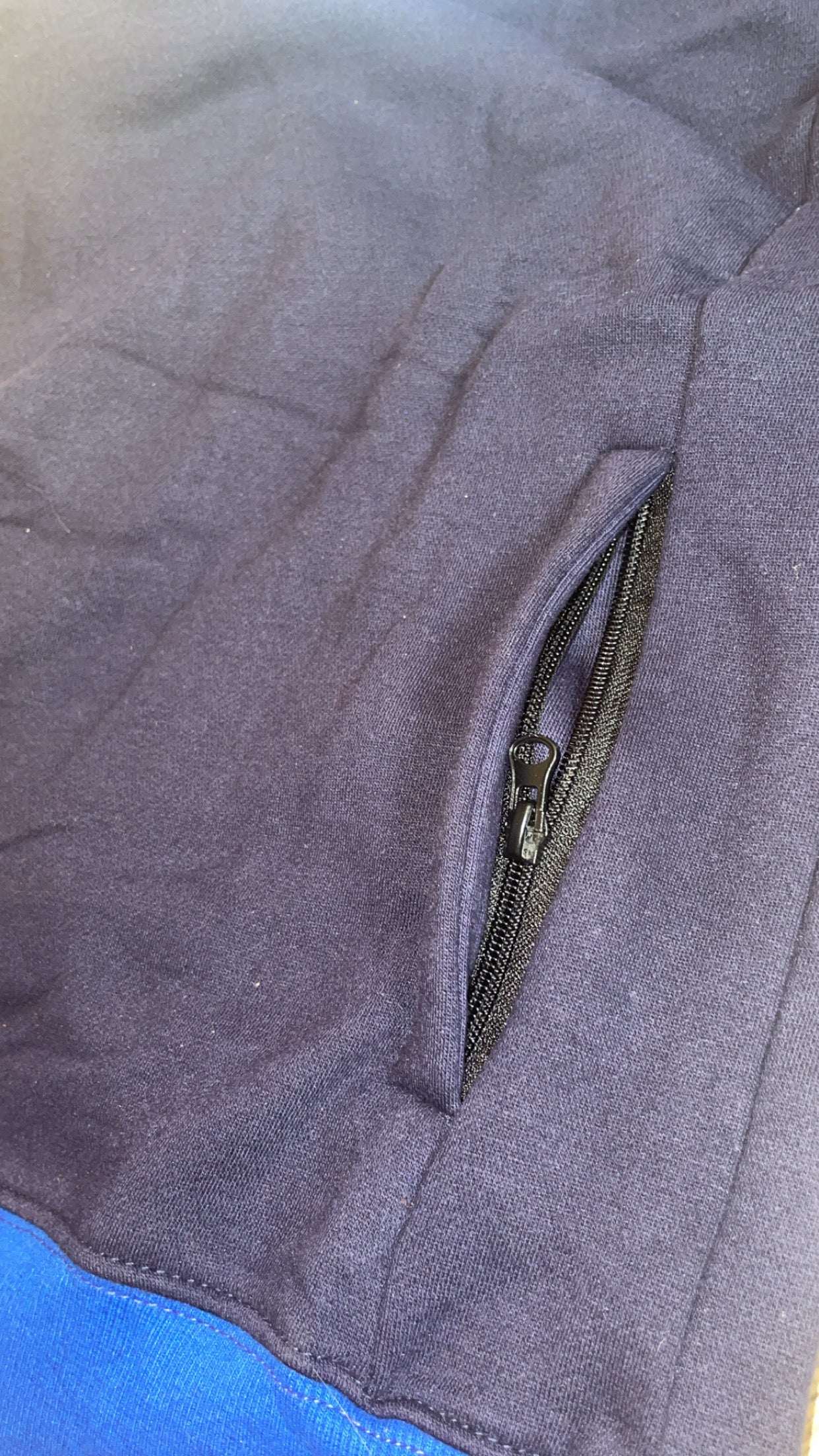 This Navy and Blue jumper has 2 Zip Pockets, also made from 100% cotton
