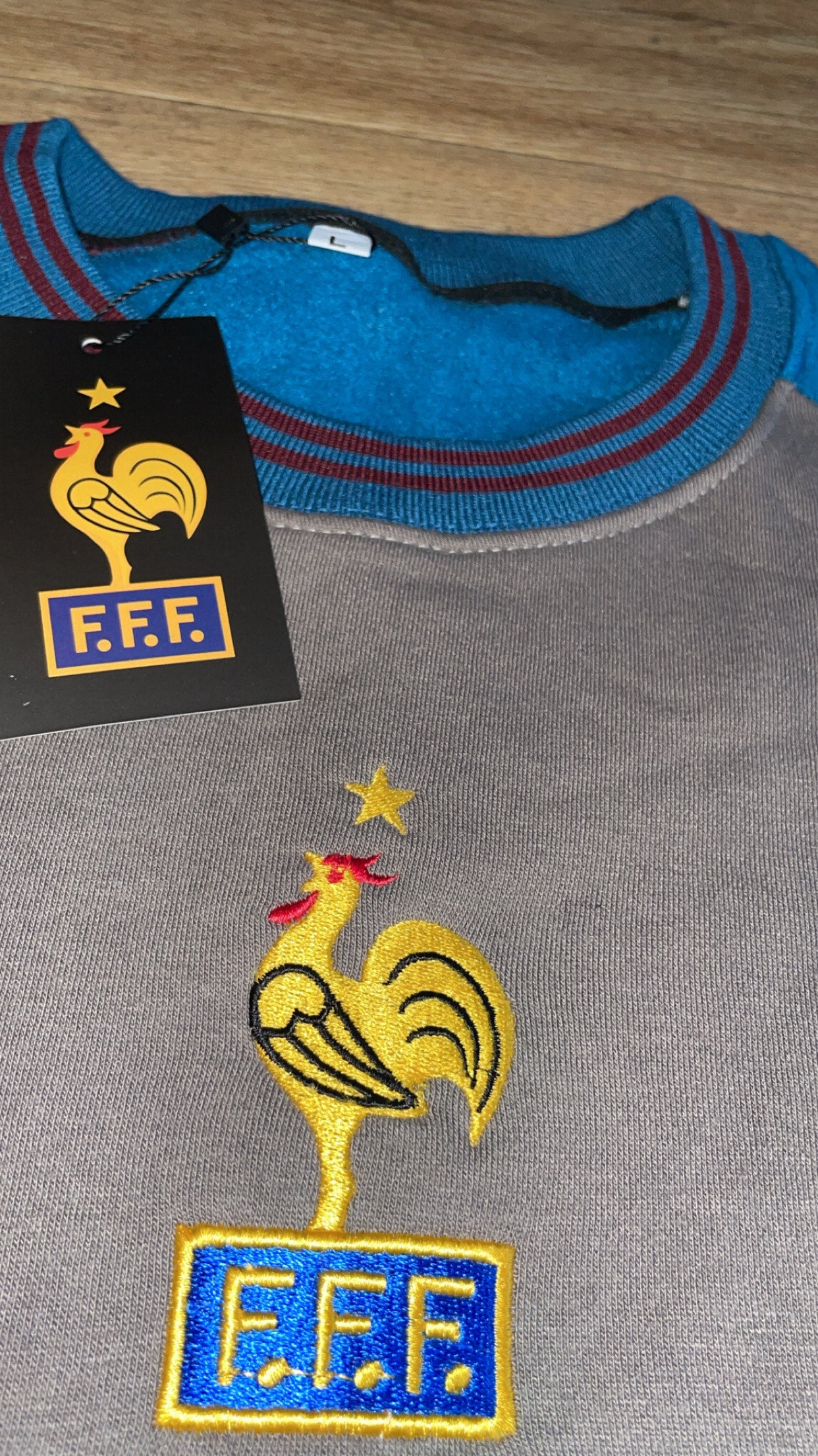 This Grey and Blue Sweatshirt has the F.F.F crest and a red threading in the collar.